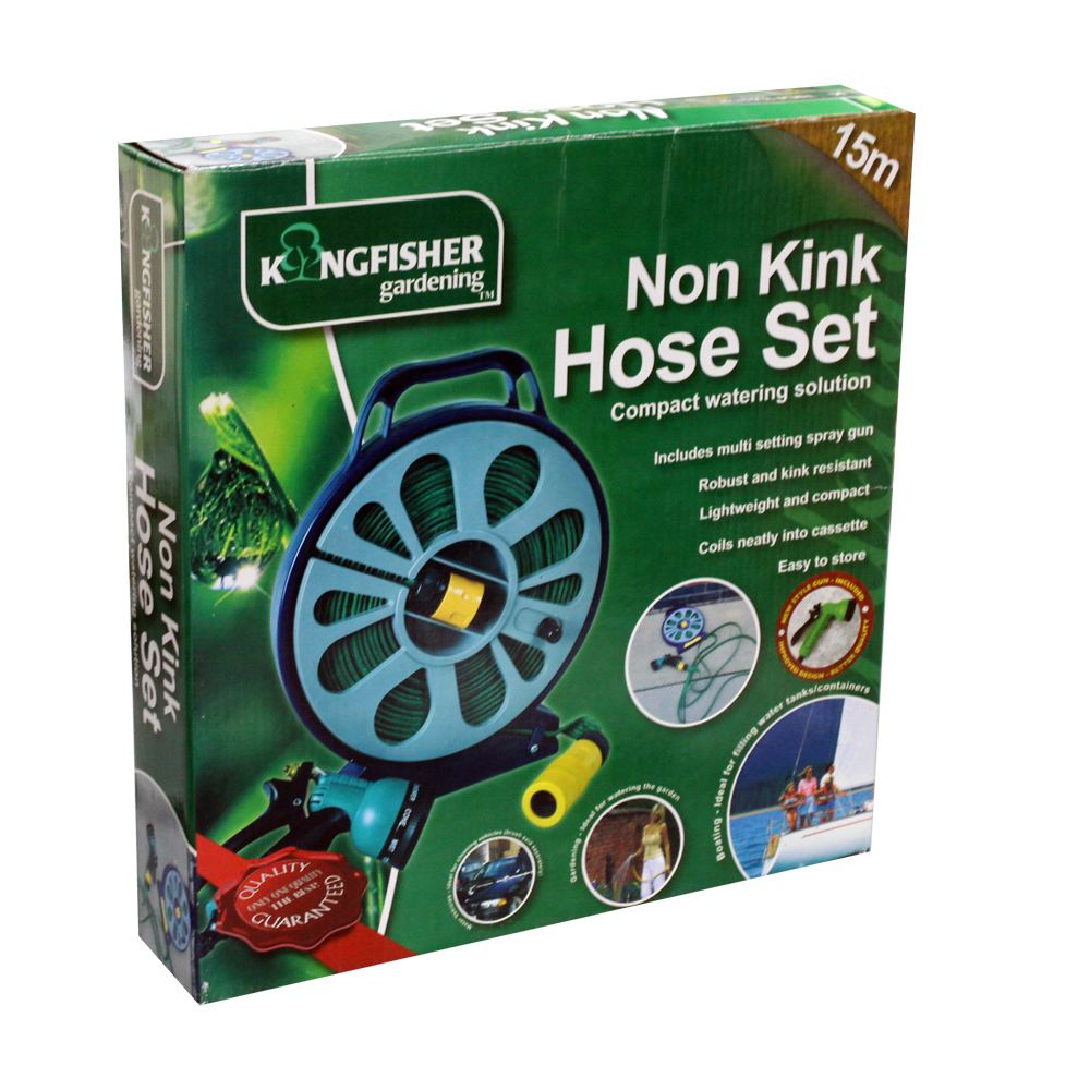 15m Lay Flat hose in cassette. Includes multi-setting spray gun and fittings. Lightweight and compact. Robust and kink- resistant. Easy to store. Packed in full colour display carton.