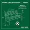 2 seater hardwood garden patio bench. Weather treated with all brass fittings. H90 x L120 x D60cm. Self assembly required. Packed in a single carton with full colour label.