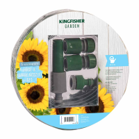 30m Half Inch reinforced, 3 layer braided garden hosepipe and spray nozzle set. Includes 30m hose, spray nozzle, female fitting, female water stop and threaded tap connector. Shrink wrapped with a full colour label.