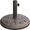 9kg cast iron effect parasol base. Bronze colour decorative design. DIA45cm. Accommodates parasol pole up to 50mm diameter.