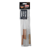 Set of 3 18 inch wooden handle BBQ tools. Consists of food tongs, fork, spatula slice. Packed in a poly bag with full colour header card.